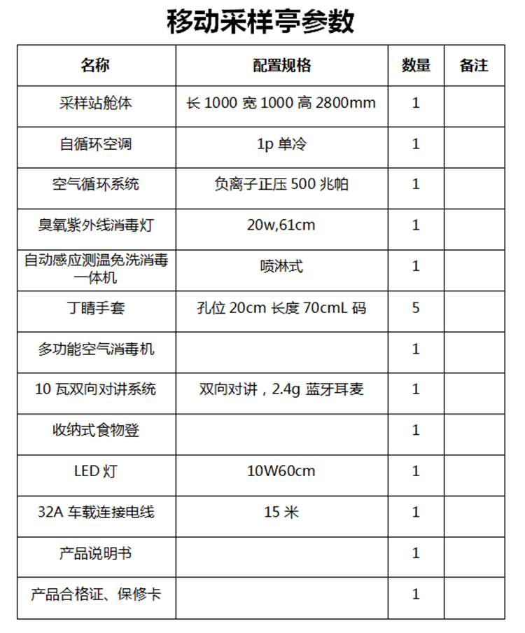 產品特點:可根據具體使用場所選擇合適的核酸采樣亭,根據使用人數可將采樣亭分為單人操作亭、雙人操作亭以及多人操作亭等,在人口密集的地方可選用雙人及以上的操作亭,而在人數較少的地方則可選用單人操作亭。此外,浩田選用的是正壓新風換氣系統,如使用紫外線、等離子作為殺菌消毒因子,使用HEPA高效濾網、活性炭濾網等凈化空氣中的飛沫、PM2.5、灰塵等污染物,甚至配備冷暖空調,為艙內調節適宜的溫度。