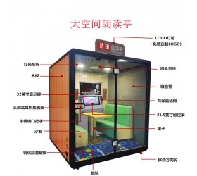 產品特點:浩田朗讀亭是集朗讀、練習、錄制、訓練等功能為一體的朗讀設備,滿足了日常人們朗讀的精神追求。 朗讀亭擁有海量朗讀資源以及豐富的背景音樂可選,也可自帶書本文稿進行自由朗讀。可以設置在單位、圖書館、文化館、博物館、機場、高校、中小學、公園景點等地方。這款朗讀亭的尺寸是200*172*220cm,空間足夠寬敞,可以容納四人。