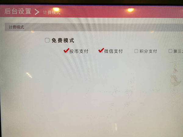 1.在后臺設(shè)置收費(fèi)模式,勾選“投幣支付”