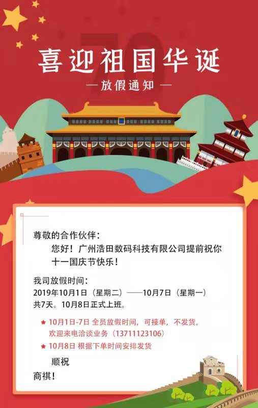 喜迎華誕70周年,2019浩田國(guó)慶假期通知