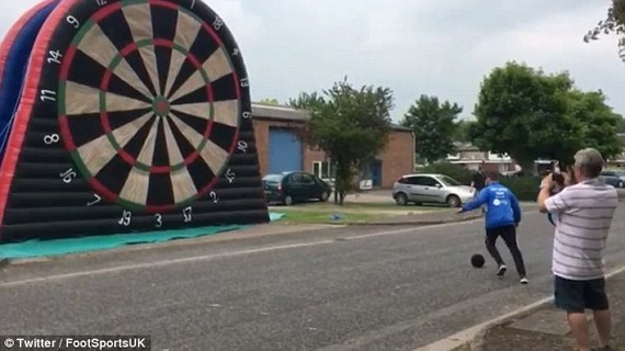 將足球踢向巨型號的飛鏢靶